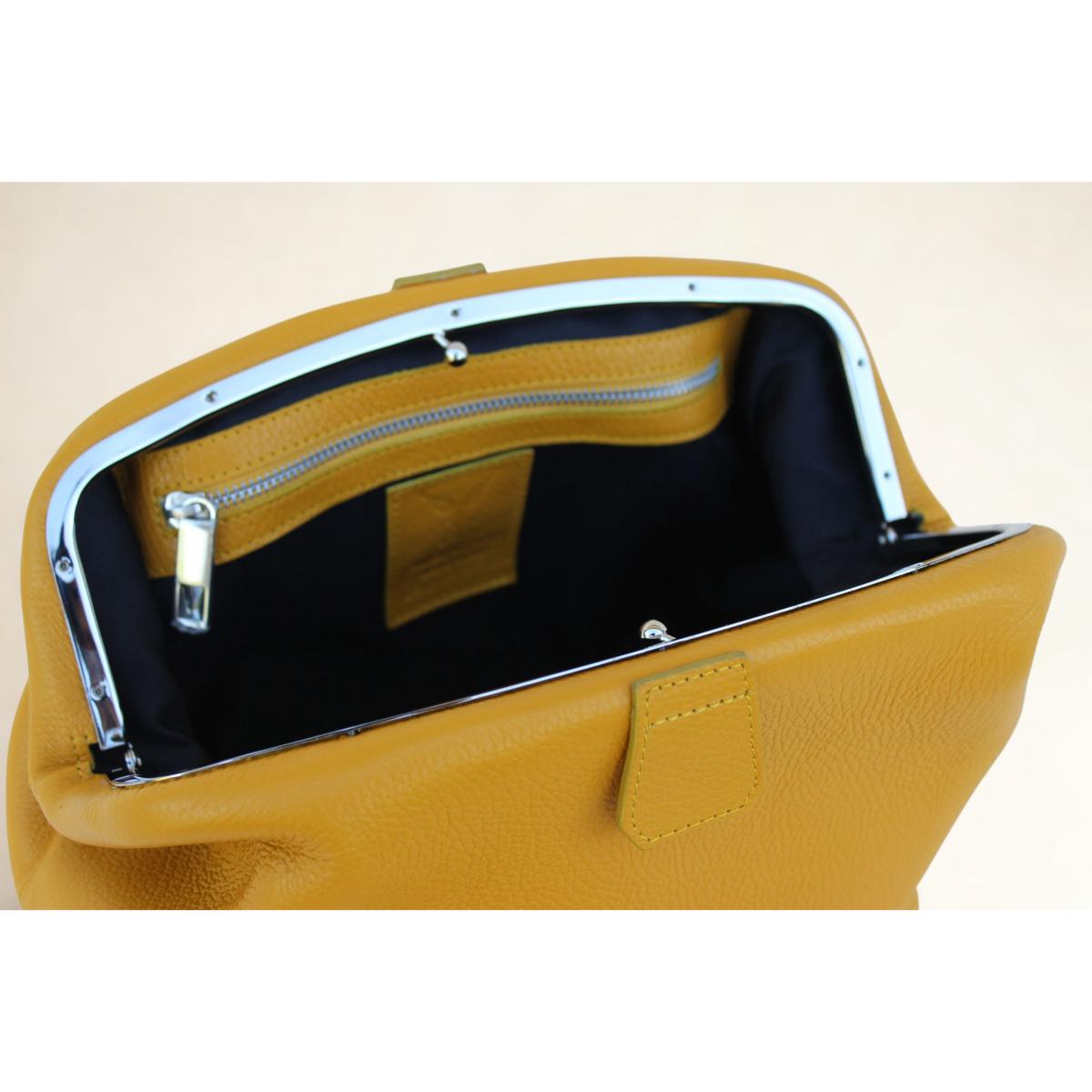 Le Jeanne se distingue par sa forme souple et structurée, évoquant un chic décontracté. Confectionné dans un cuir de veau grainé d'exception, sa texture riche et sa couleur unique (moutarde) en font une pièce immédiatement reconnaissable. La souplesse du cuir met en valeur son design bouffant et sa fermeture élégante.